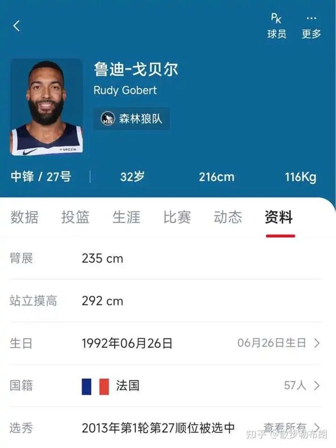 着戈贝尔,身高216臂展235,篮球技术稀烂,靠身体和防守。